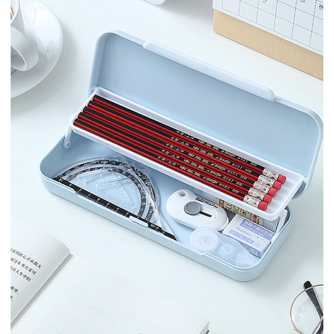 KOTAK TEMPAT PENSIL PENYIMPANAN ATK ANAK PENCIL CASE 2 TINGKAT
