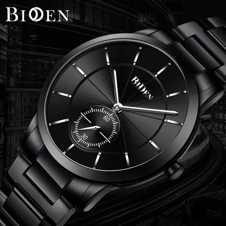 BIDEN Jam tangan pria Bisnis santai Mode Anti Air kuarsa Tali Stainless Steel Jam Tangan Cowok Original