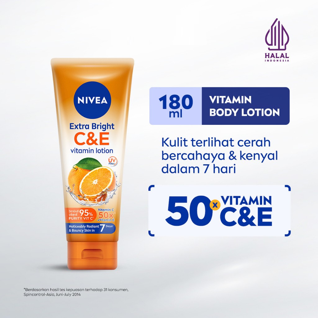 NIVEA Body Lotion Extra Bright C&E Vitamin Lotion 180ml - Mencerahkan & kulit kenyal dalam 7 hari