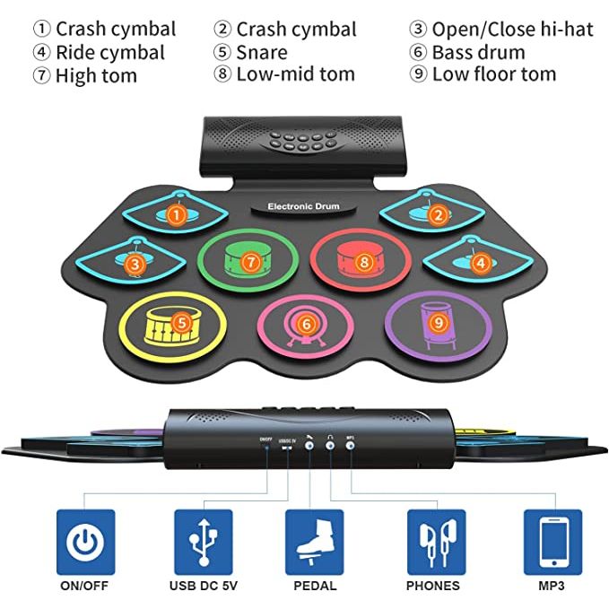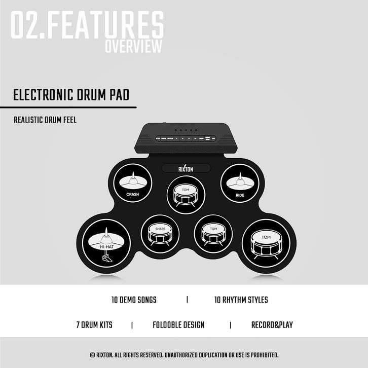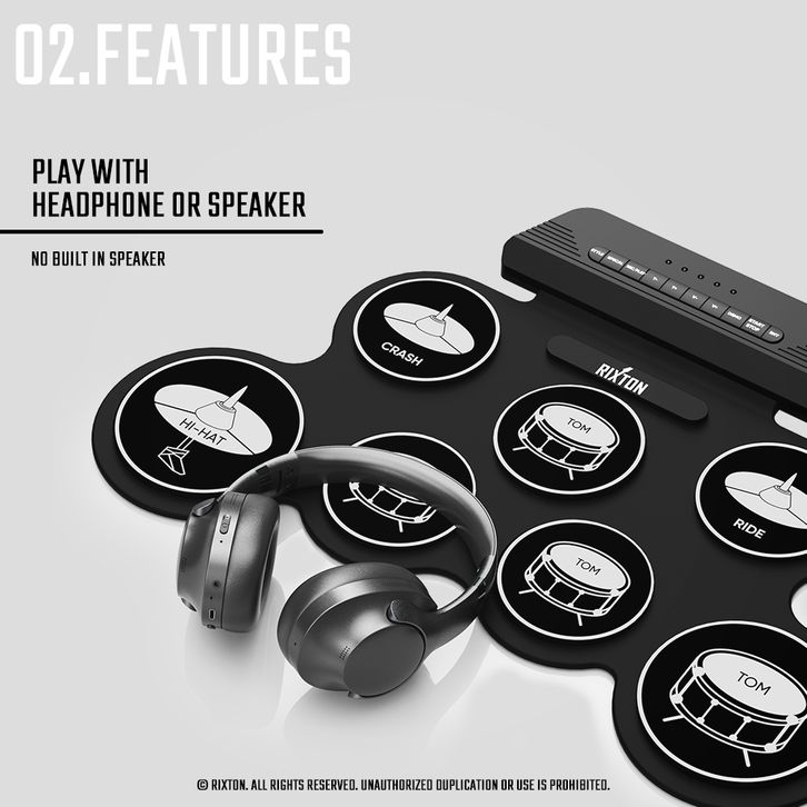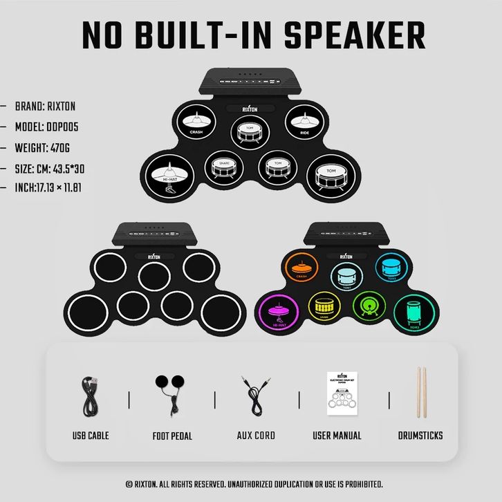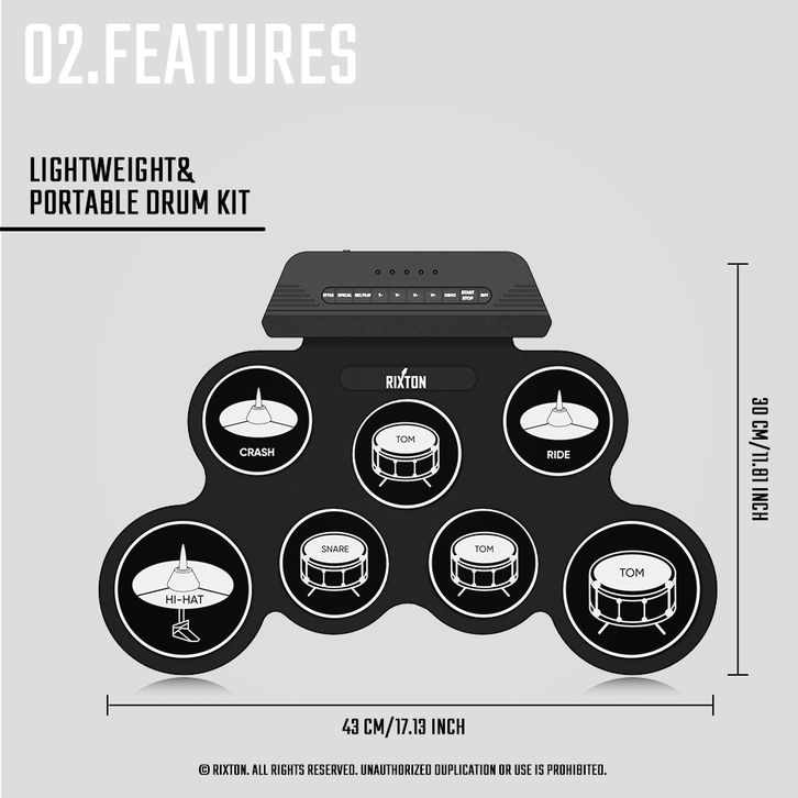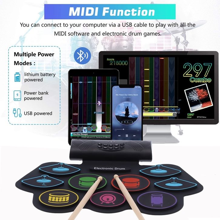 RIXTON DRUM ELEKTRIK MURAH ORIGINAL PORTABEL DIGITAL USB 7 BANTALAN ROLL UP DRUM SET SILICONE ELECTRIC DRUM PAD ELEKTRIK
