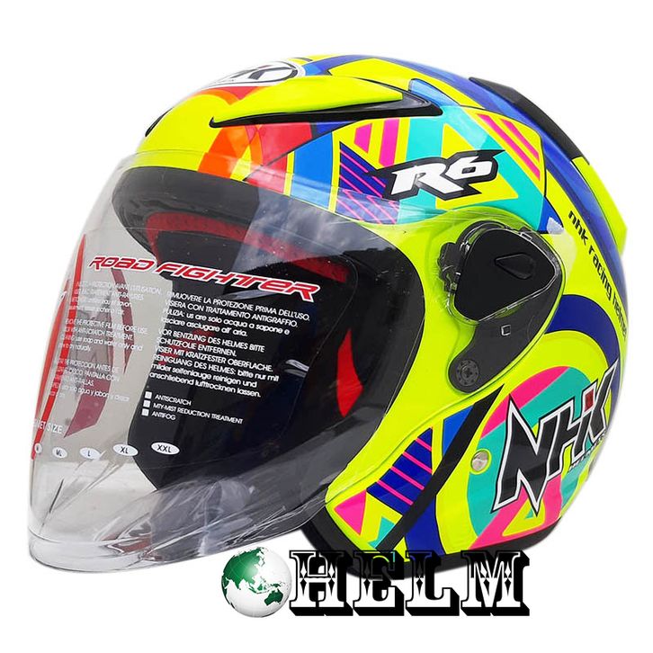 BEST SELLER HELM NHK R6 MOTIF PIGMENT YELLOW FLUO / NHK SINGLE VISOR / HELM HALF FACE SNI ORIGINAL TERLARIS