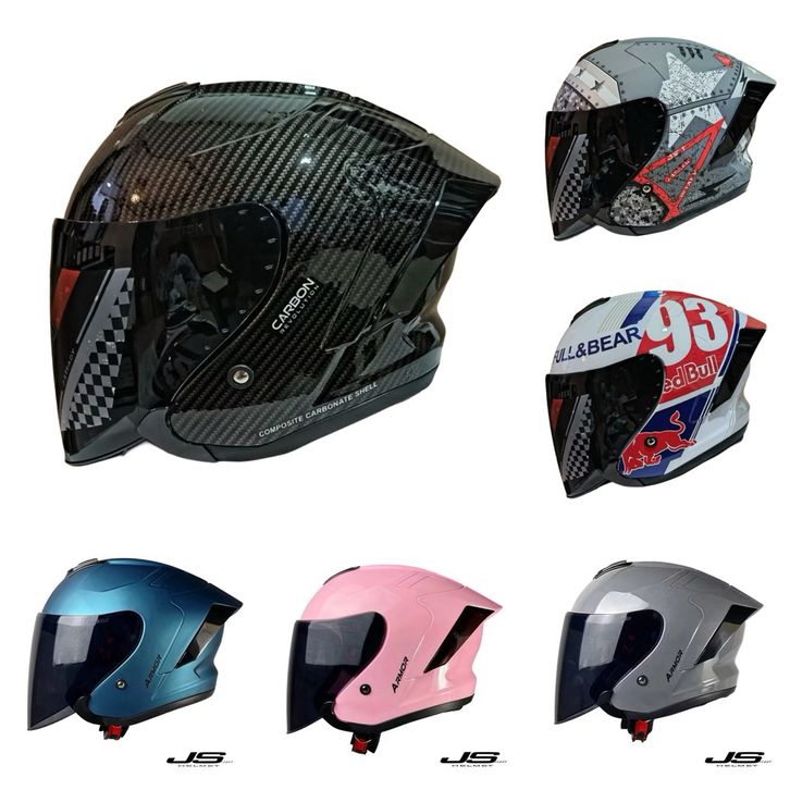 Terlaris No.1 Helm JS Armor Carbon & Sev Leopard Half Face Original SNI + Paket Ganteng Motorcyle