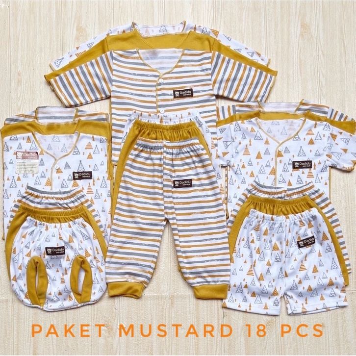MUSTARD SERIES - 18 PCS Paket Baju Bayi Kekinian Celana Bayi Setelan Bayi Baju Bayi Newborn Baju Bayi Baru Lahir Lengkap