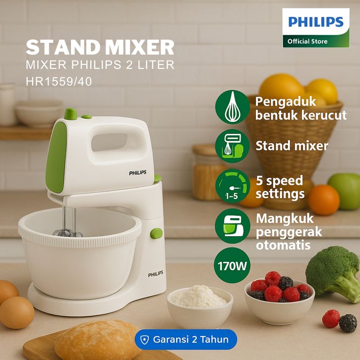 Mixer Philips - 2 Liter - HR1559/40 - Stand Mixer - Mikser Philips -Mixer Pencampur - Mixer Kue Hijau ashley donat mito
