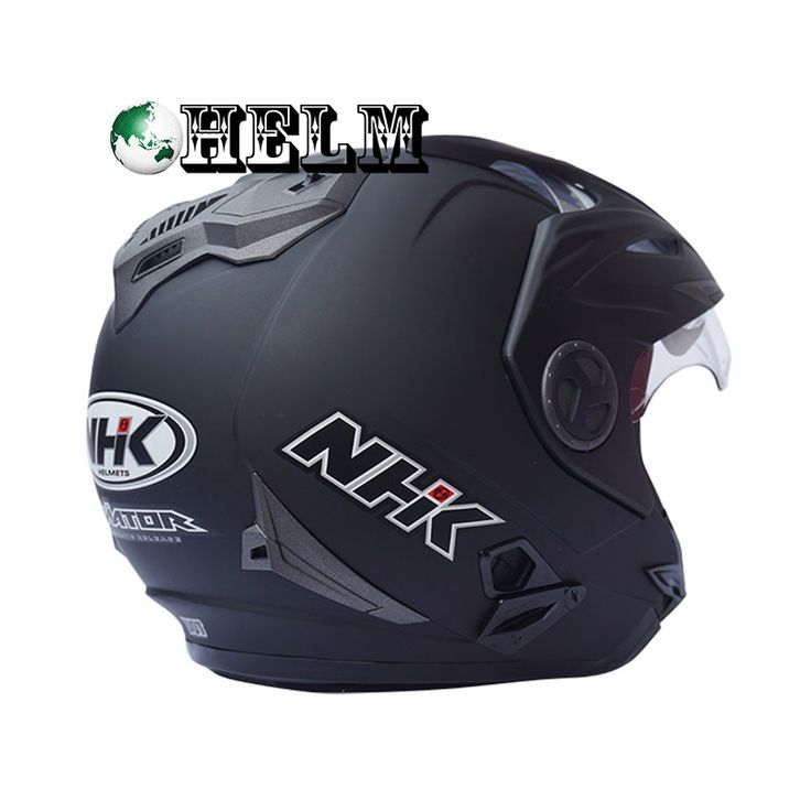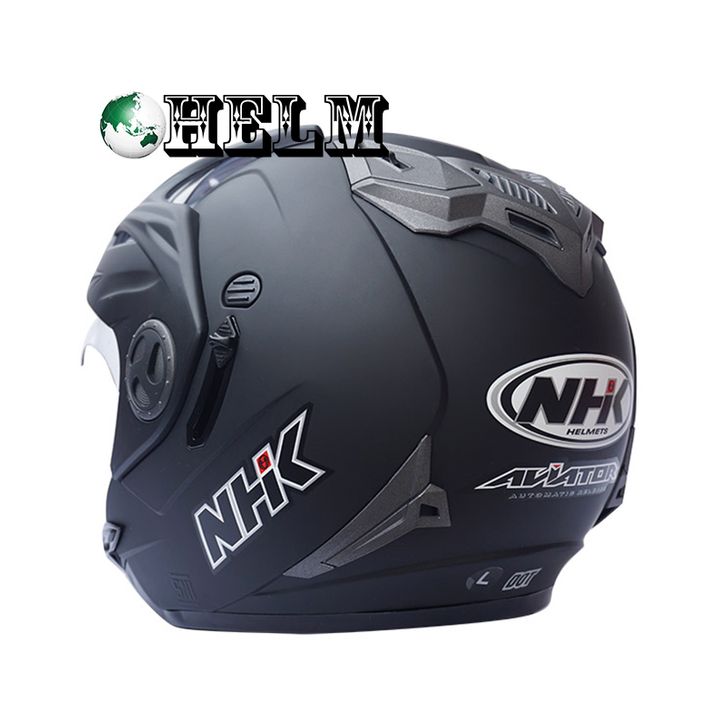 BEST SELLER HELM NHK AVIATOR SOLID BLACK DOFF / NHK DOUBLE VISOR / HELM HALF FACE SNI ORIGINAL TERLARIS