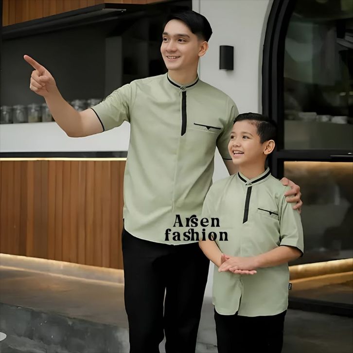 BAJU KOKO COUPLE AYAH DAN ANAK Baju Koko Couple Ayah Anak Laki Laki Warna Denim Terbaru Bahan Katun Guppy Premium