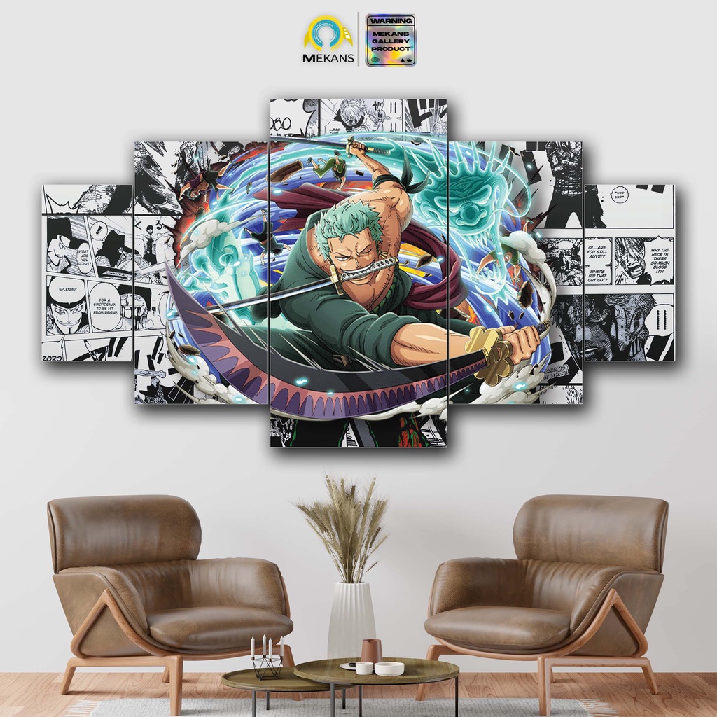 MEKANS 1 SET PAJANGAN HIASAN DINDING ONE PIECE RORONOA ZORO 5PCS POSTER KAYU WALL DECOR