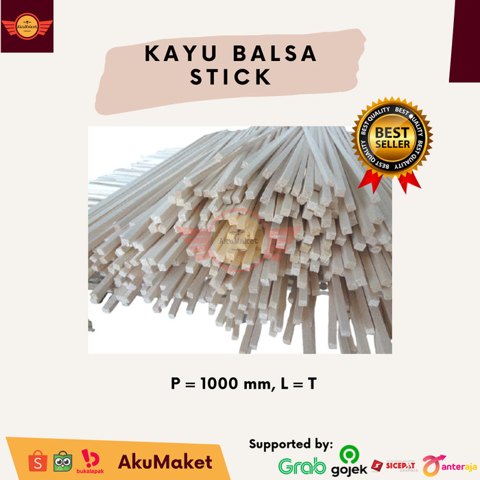 KAYU BALSA STICK 1000 X 3 X 3 MM (VIA GOJEK & GOSEND)