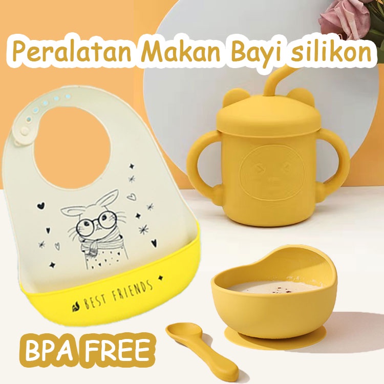 TREEHUB TEMPAT MAKAN SILICON DENGAN BIB PERALATAN MAKAN ANAK MURAH TABLEWARE SILIKON ANAK IMPORT BIB GELAS