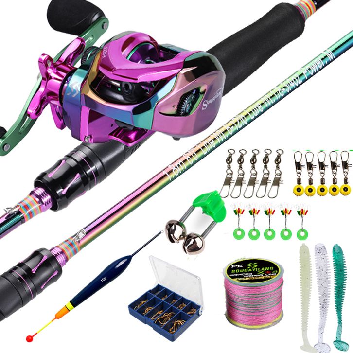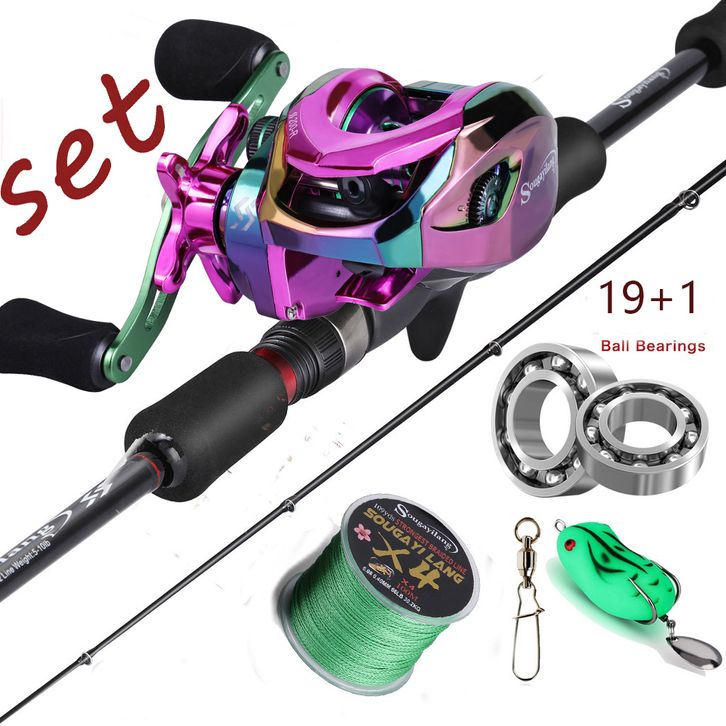 Joran dan Reel 1.8M 2.1M 2 Bagian Casting Fishing Rod dan 18 + 1 BB 7.2:1 Rasio Gear Rem Magnetik Baitcasting Reel Meman