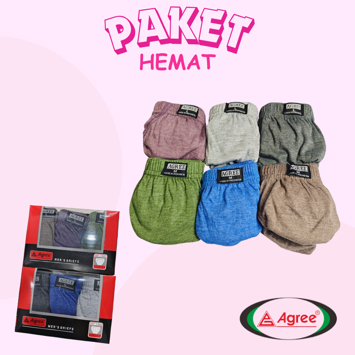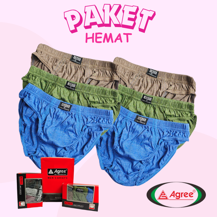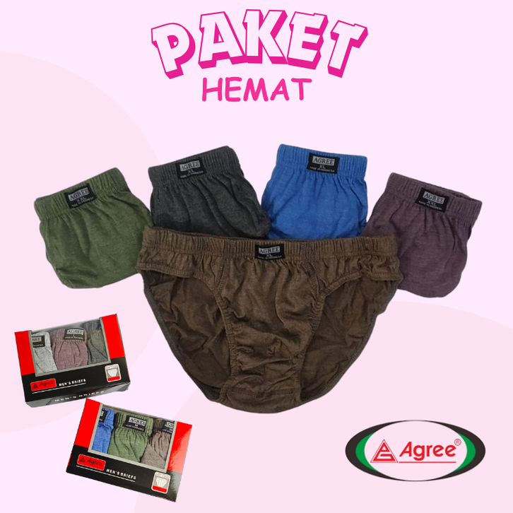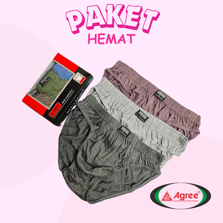 CELANA DALAM PRIA AGREE DEWASA JUMBO CD BRIEF UNDERWEAR 3 PCS M L XL XXL KATUN ELASTIS MURAH TERLARIS REKOMDENDASI BEST