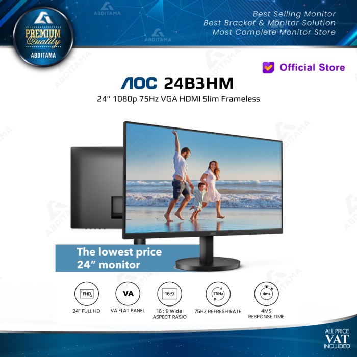 MONITOR LED AOC 24B3HM 24" 1080P 75HZ VGA HDMI SLIM FRAMELESS - 24B3HM PROMO