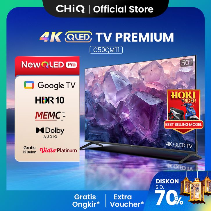 NEW CHiQ QLED TV 4K 50 inch Google Smart QLED PRO Digital TV Dolby Audio DBX-TV Google Assistant (C50QMT1)