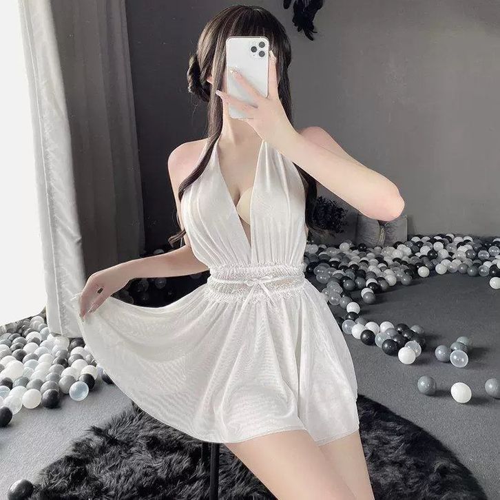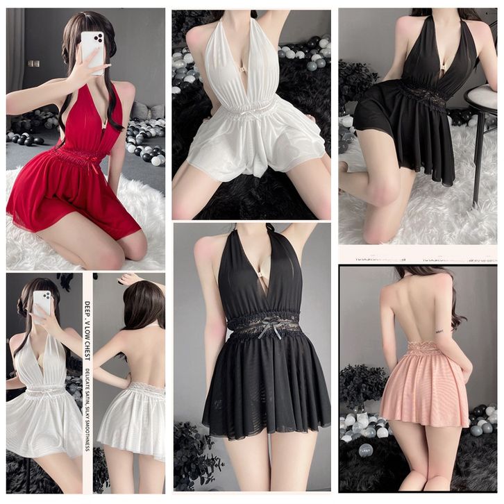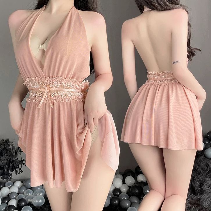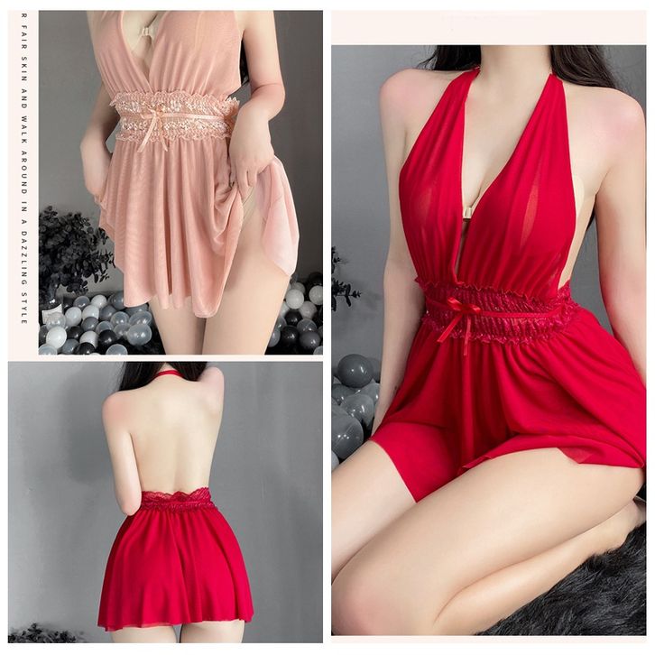 Lingerie Sexy hot Halter Neck Perspective Renda Dress Baju Tidur Lingerie Set 3A559