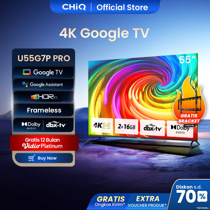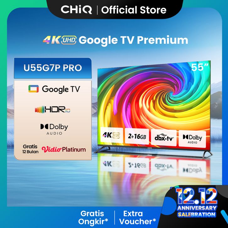 【Google TV】CHiQ 55 inch Smart TV 4K UHD-HDR10+DBX Dolby Audio Google Assistant Netflix Youtube Digital TV (U55G7P Pro)