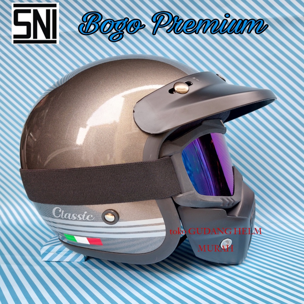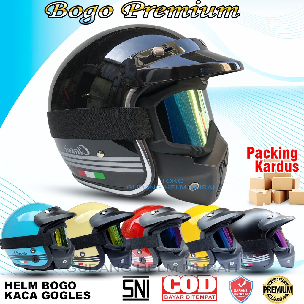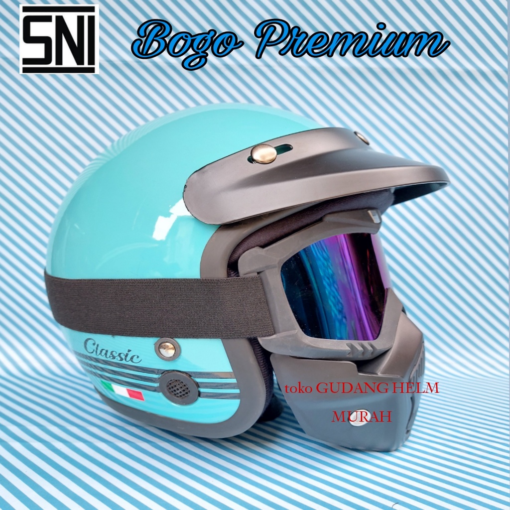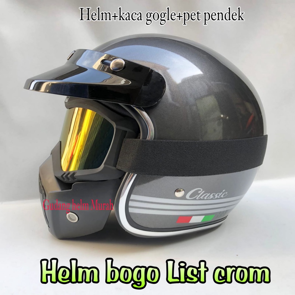 PROMO HELM BOGO DEWASA SNI PRIA WANITA KACA CEMBUNG DATAR FLAT SILVER PELANGI SMOK HITAM