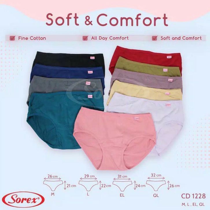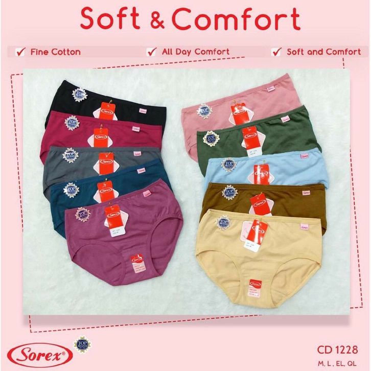 6 PCS Cd Sorex 1228 Cutting Midi | Celana Dalam Wanita Sorex Katun Mix Strecth