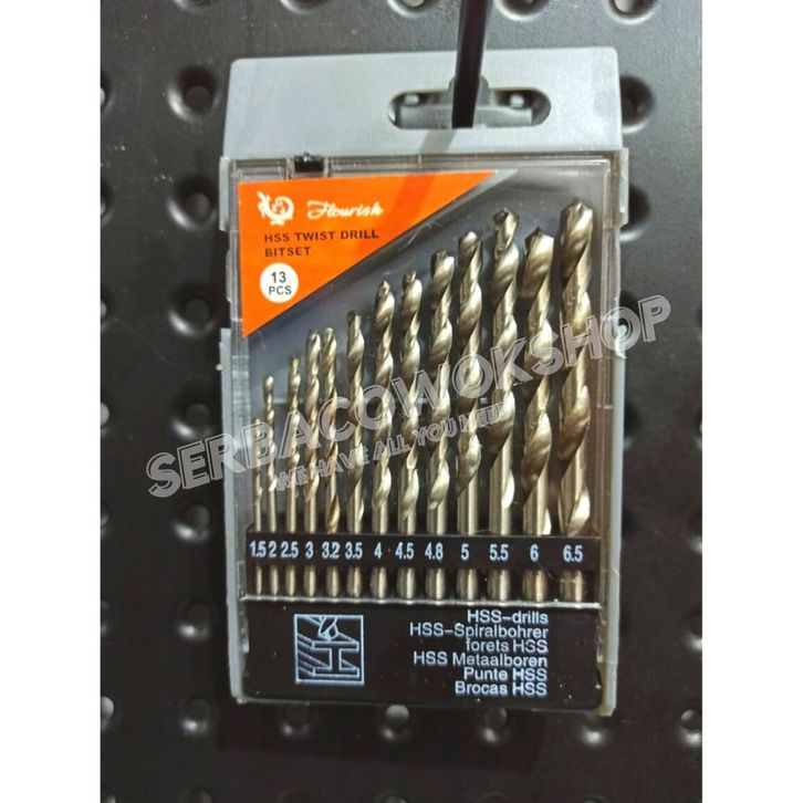 Mata Bor Besi Set 1.5 - 6.5 mm 13 Pcs Mata Bor HSS Twist Drill Bitset Termurah Berkualitas