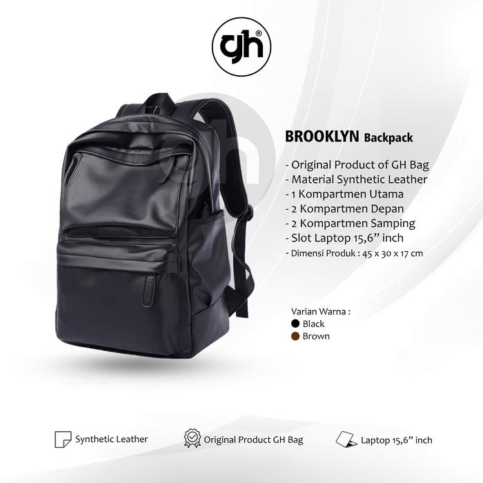 GH-Bag Tas Ransel Pria Wanita Aesthetic BROOKLYN Backpack PU Leather