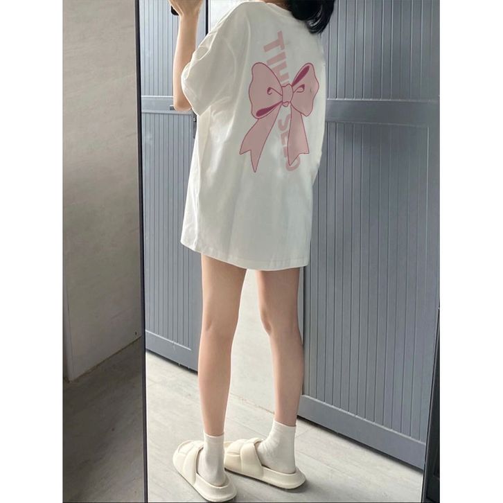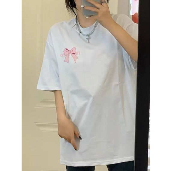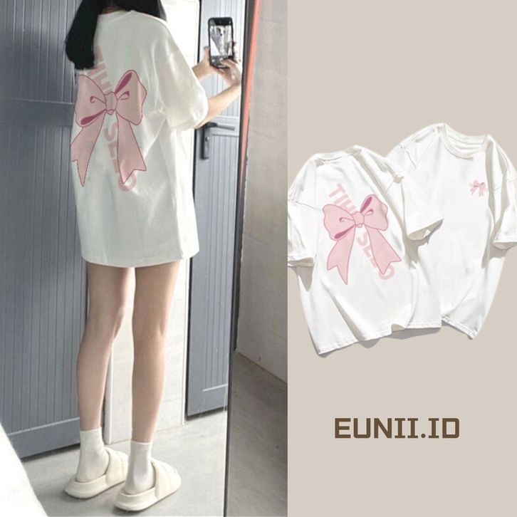 EUNII T-shirt Lengan Pendek Dasi Kupu-Kupu Korean Style/Baju Lengan Pendek Wanita/Baju Wanita/Baju Korean Style