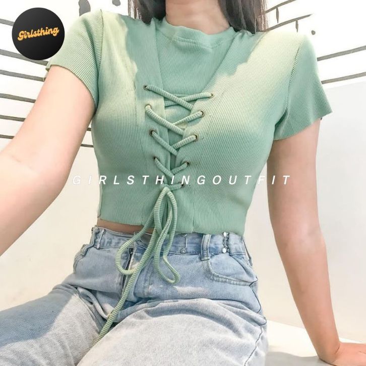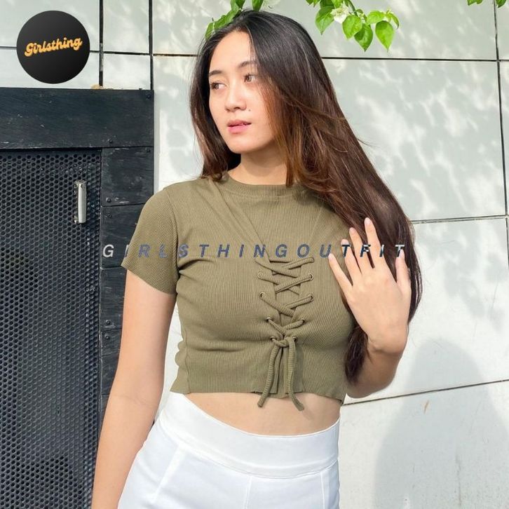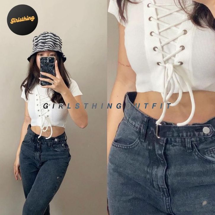 Crop Top - RENA - Lace Up Top - Eyelets - Atasan Wanita - Fashion Wanita