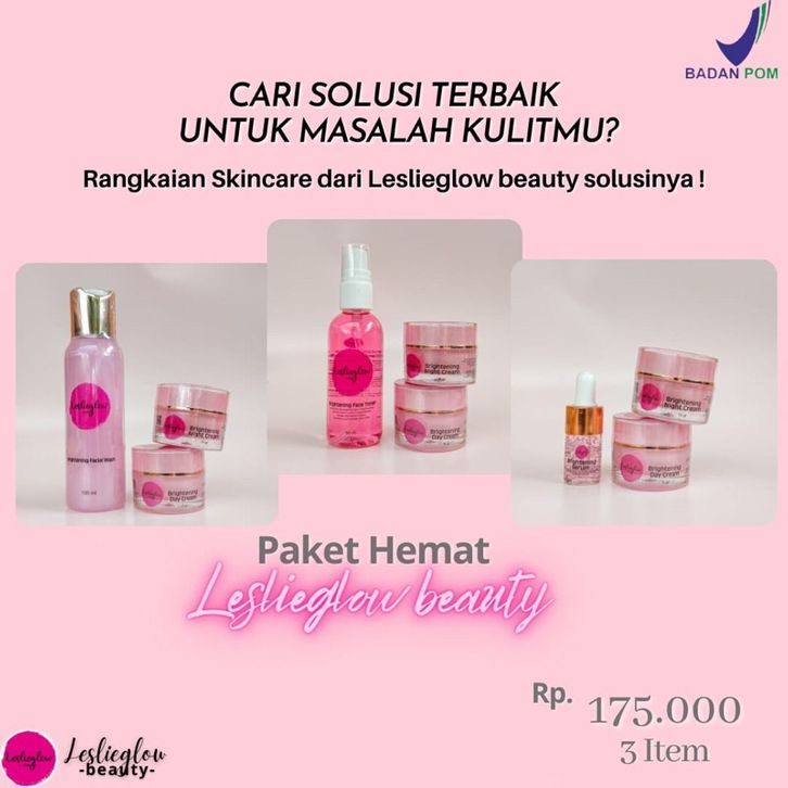 Leslieglow Beauty Brightening 3 In 1 Paket Hemat Skincare Bpom