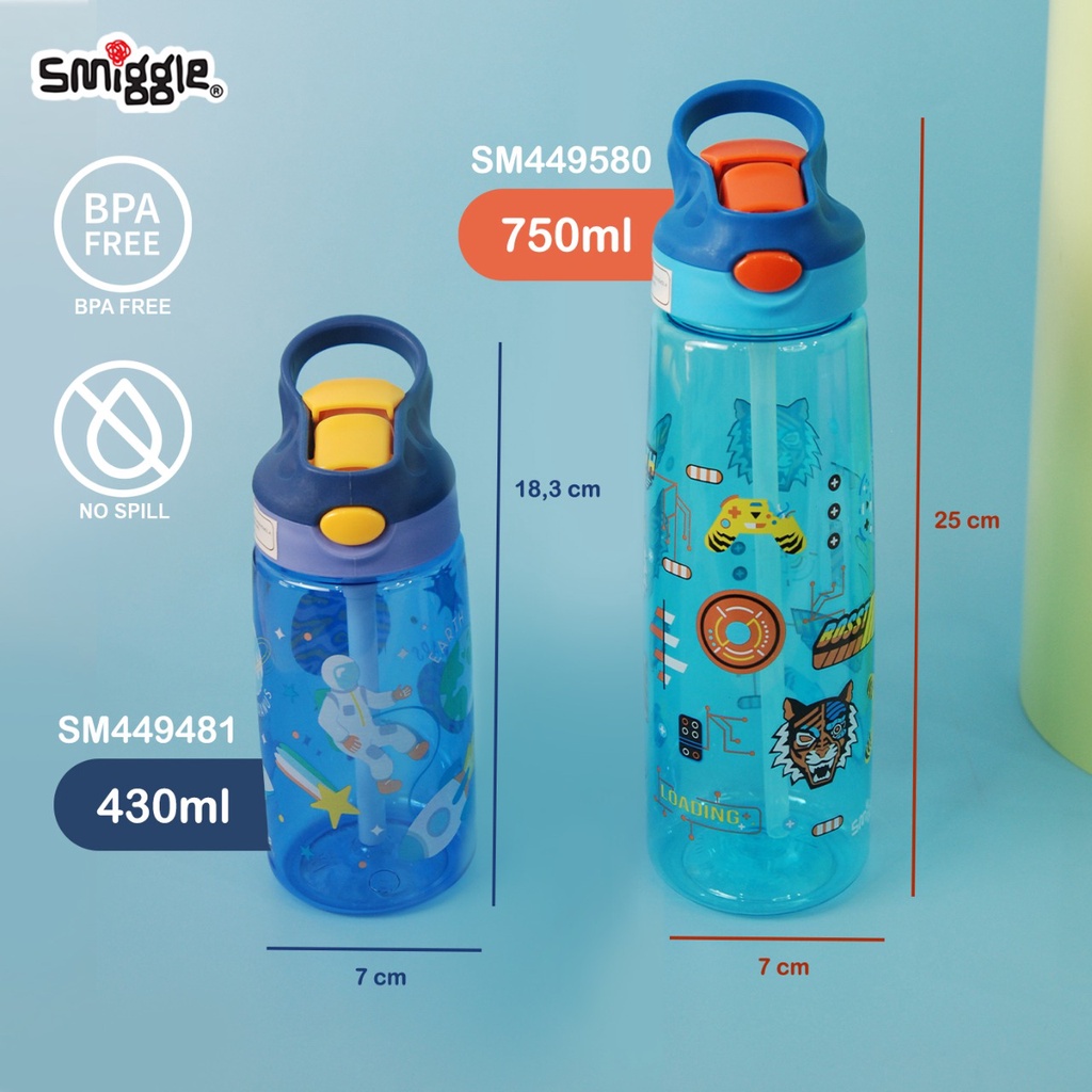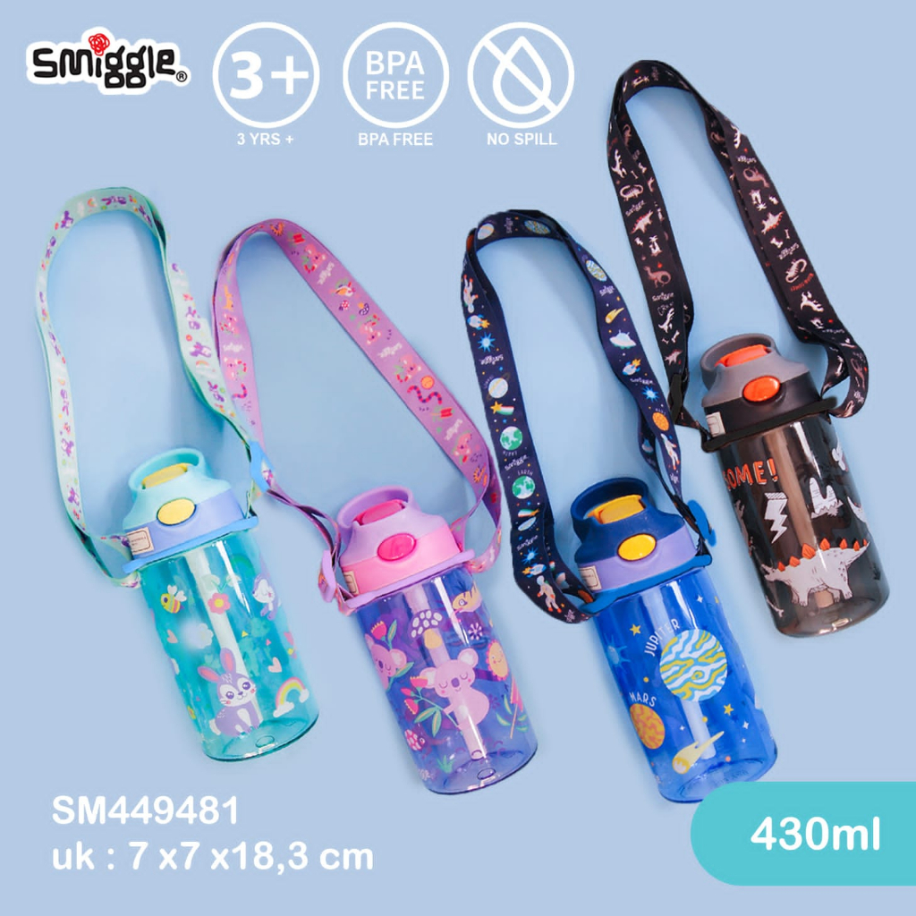 SMIGGLE JUNIOR BOTOL AIR MINUM ANAK SEDOTAN SILICONE 430ML DAN 750ML DENGAN TALI PANJANG BPAFREE