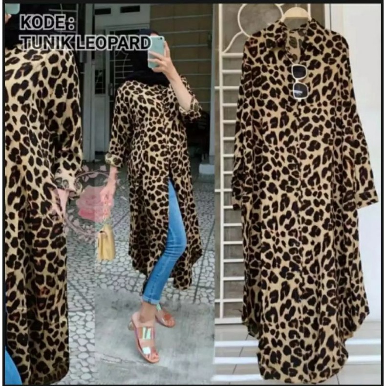 TUNIK WANITA LEOPARD TUNIK MOTIF MACAN OVER SIZE TUNIK WANITA MOTIF MACAN JUMBO UKURAN M L XL XXL 3XL 4XL