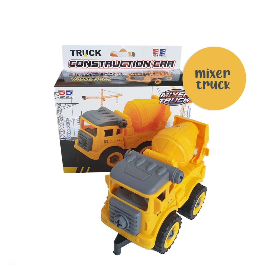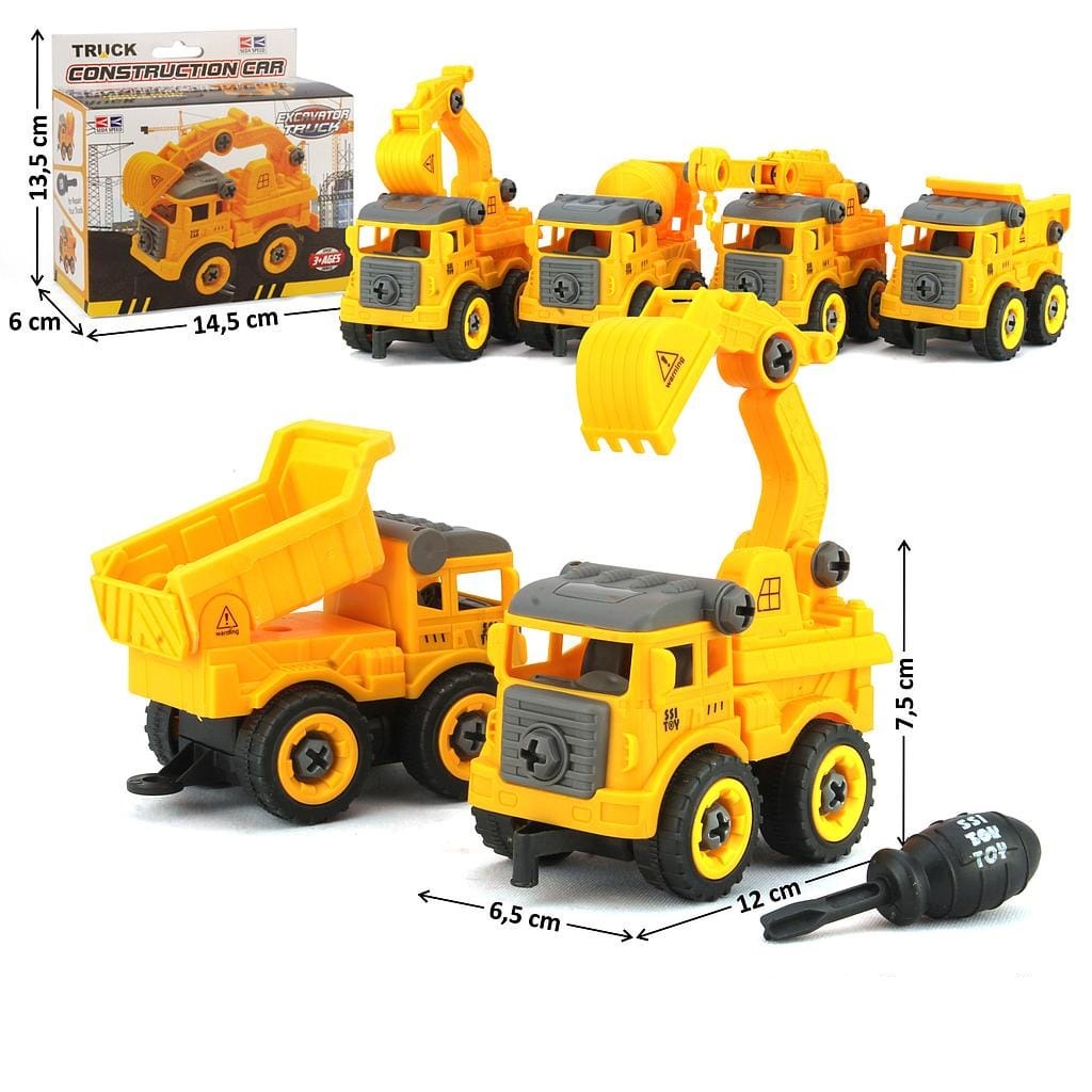 DT0378 PROMO MAINAN ANAK MOBIL MOBILAN TRUCK KONSTRUKSI BONGKAR PASANG PLUS OBENG