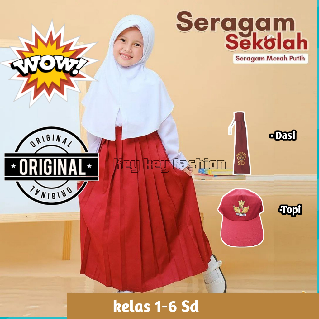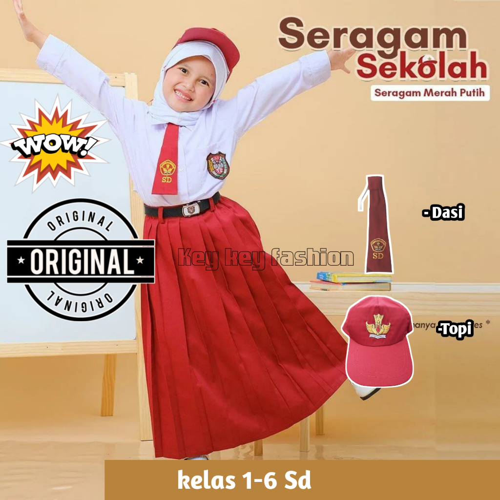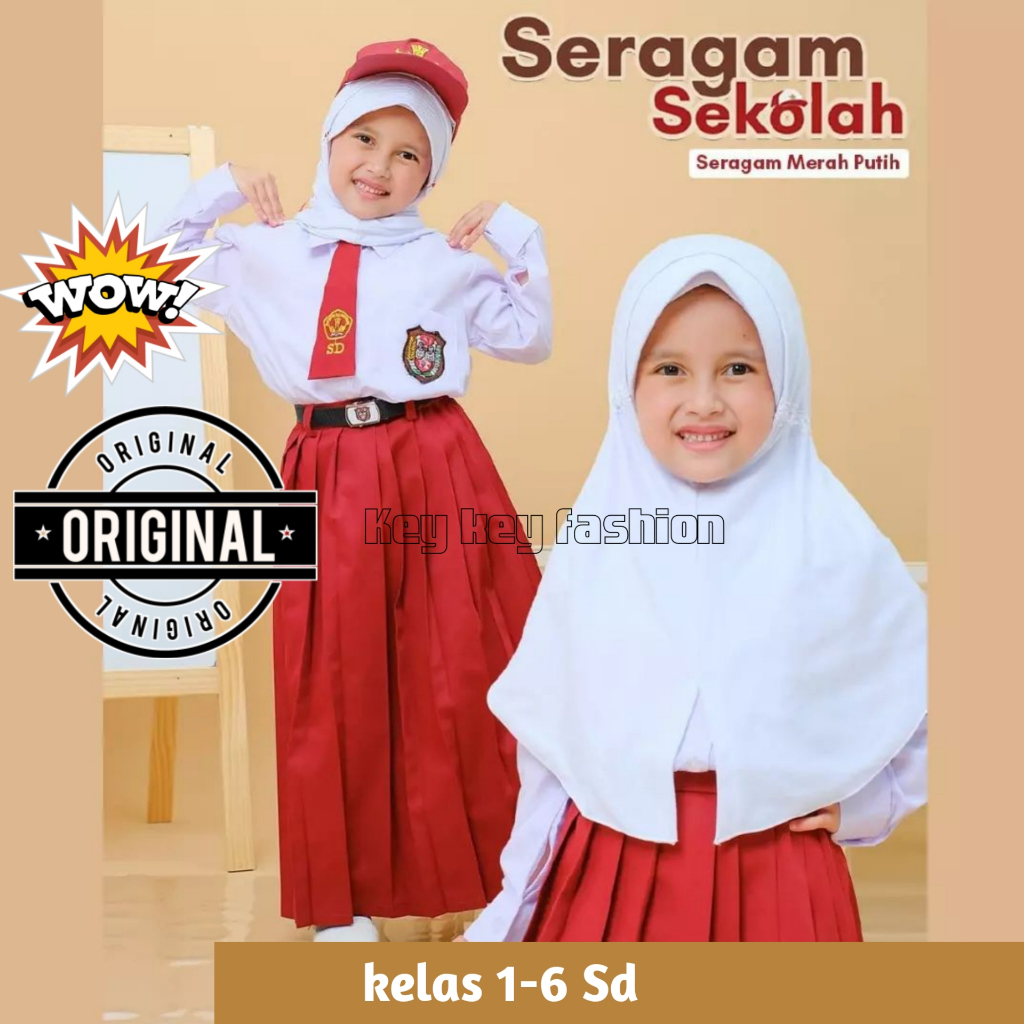 seragam anak sekolah sd perempuan cewek kelas 1 2 3 4 5 6 7 lengan panjang / setelan seragam baju dan rok panjang anak