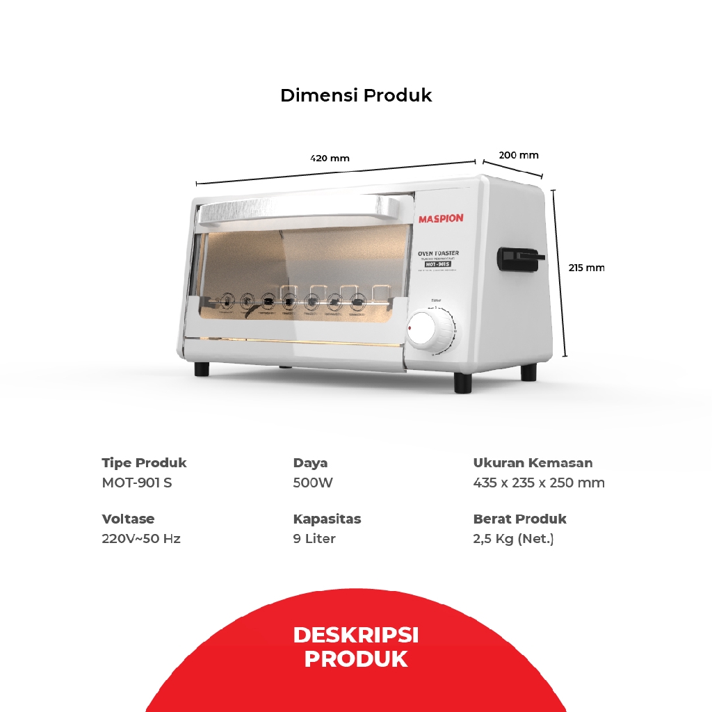 MASPION OVEN TOASTER MOT 901S (9L) ORIGINAL GARANSI RESMI
