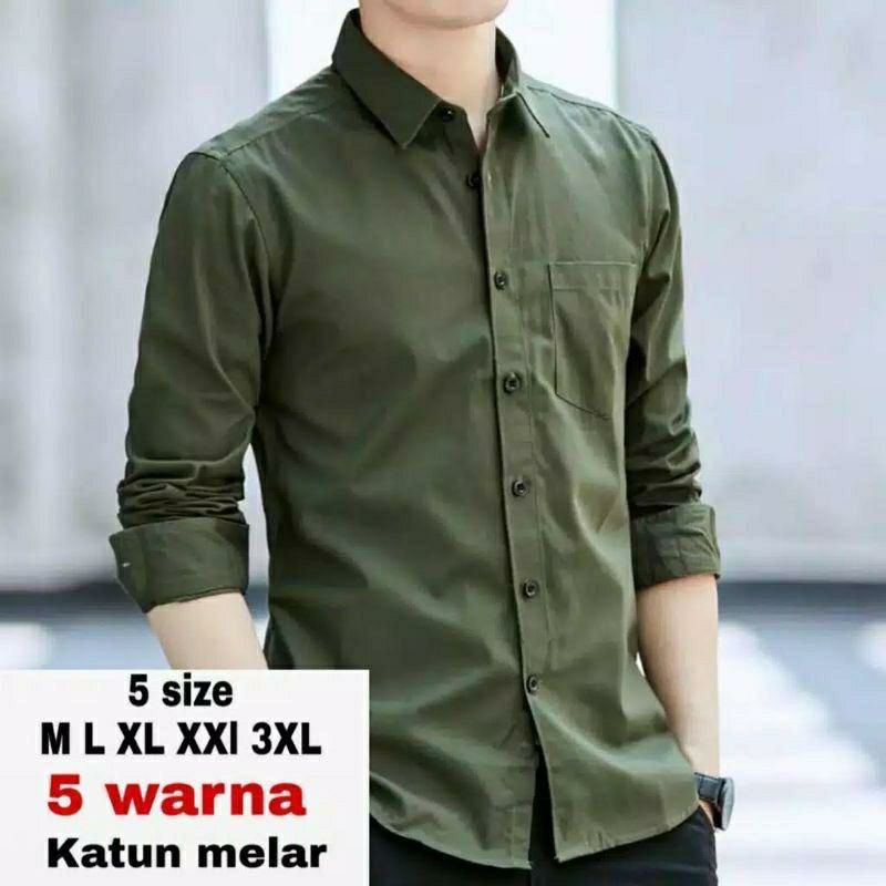 BAJU KEMEJA HEM ATASAN PRIA POLOS HIJAU ARMY KASUAL FORMAL KATUN LENGAN PANJANG PRIA COWOK LAKI LAK