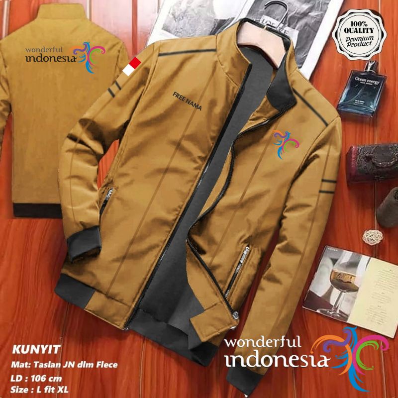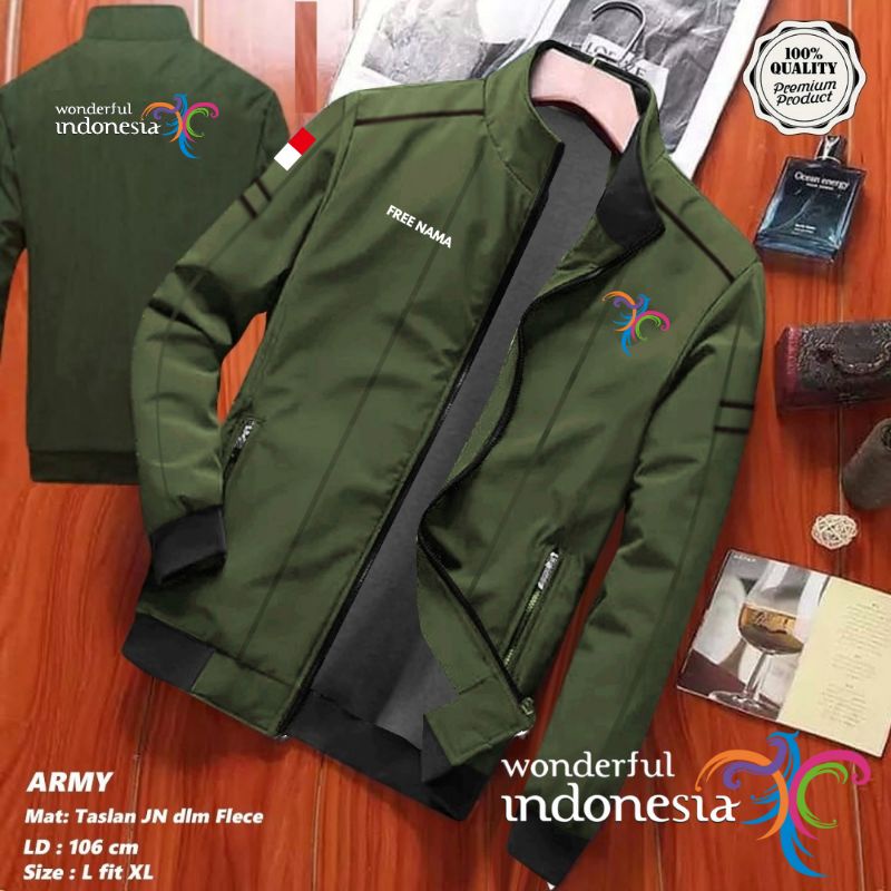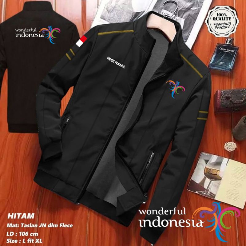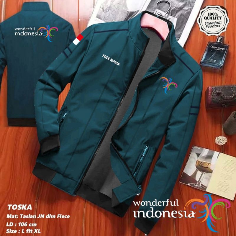 JAKET PARIWISATA FREE NAMA WONDERFUL INDONESIA WATERPROOF OUTDOOR PRIA WANITA BOLAK BALIK DISTRO