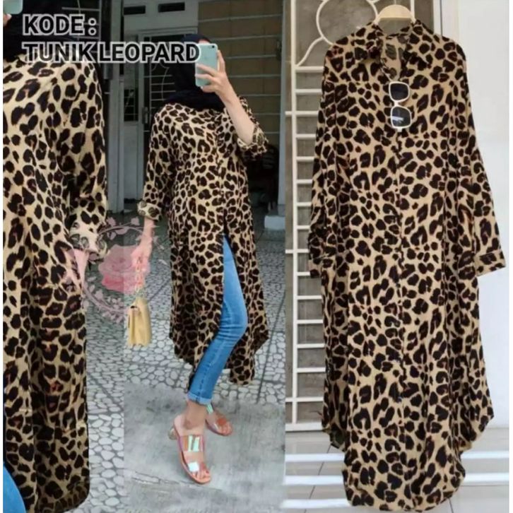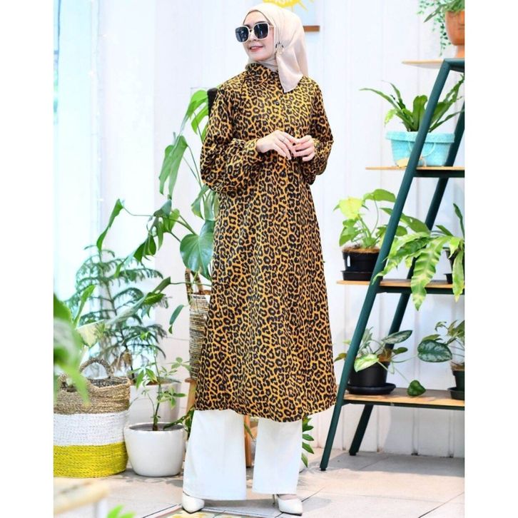 Kekinian 2021 Long Tunik Motif Leopard Jumbo Big Size Over Size Tunik Kasual Tunik Keren Tunik Mu