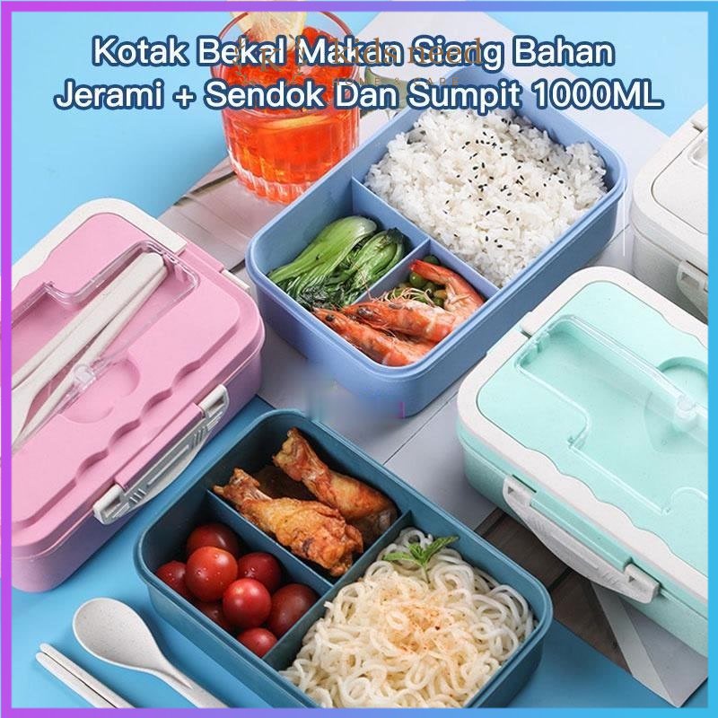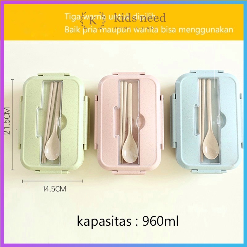 TERLARISS LUNCH BOX SET 4 IN 1 /KOTAK BEKAL MAKAN JERAMI GANDUM/KOTAK MAKAN FREE SENDOK TEMPAT MAKAN