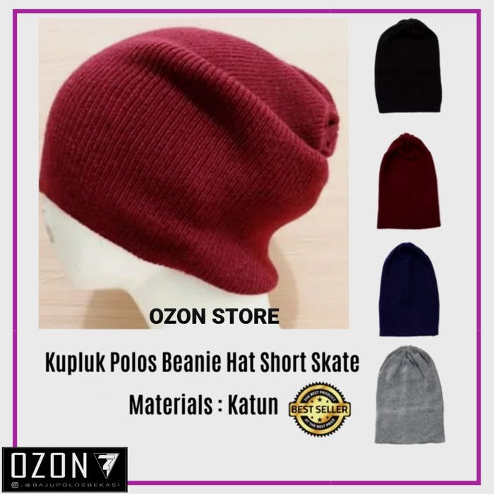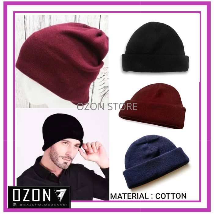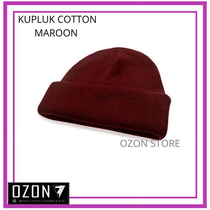 topi pria & wanita kupluk Katun rajut beanie hat polos Maroon - Maroon
