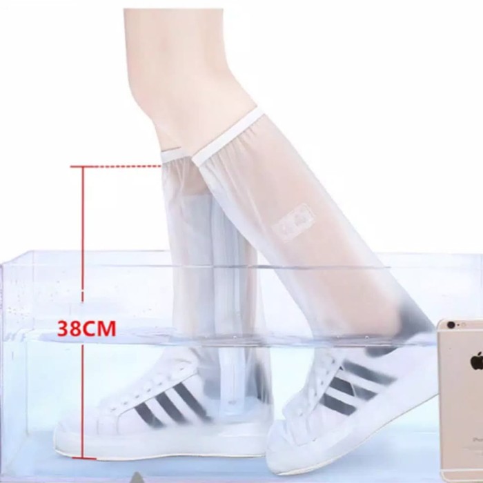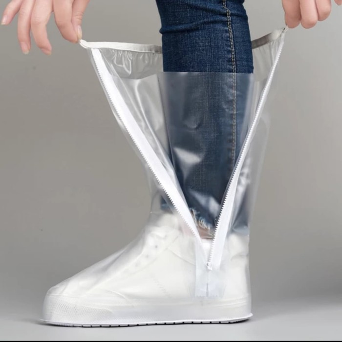 SARUNG COVER SEPATU BOOT HUJAN ANTI AIR ANTI SLIP KWALITAS BAGUS - L, PUTIH
