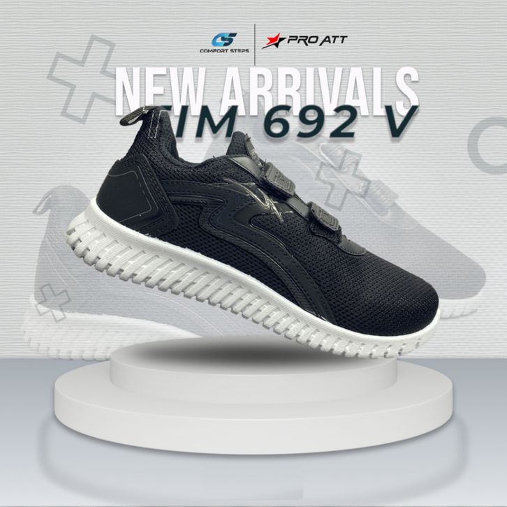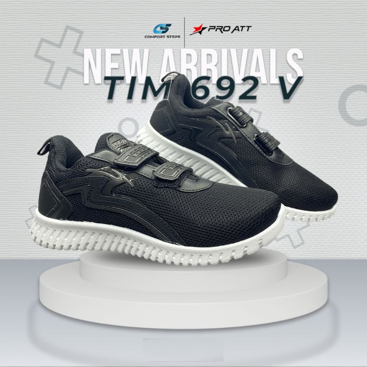 SEPATU ANAK LAKI PEREMPUAN SEKOLAH PRO ATT TIM MODEL HITAM PUTIH / PEREKAT / TALI / SIZE 35 - 38