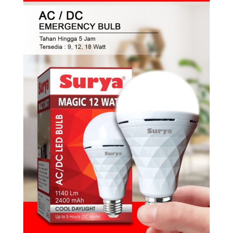 LAMPU LED PUTIH EMERGENCY SURYA 9 WATT 12 WATT 18 WATT NYALA OTOMATIS SAAT MATI LISTRIK ORIGINAL