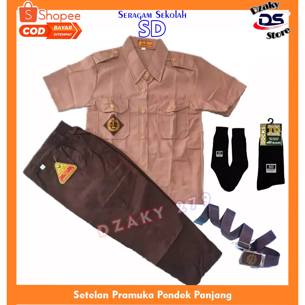 SERAGAM SEKOLAH SD PRAMUKA LAKI BAJU PENDEK CELANA PANJANG