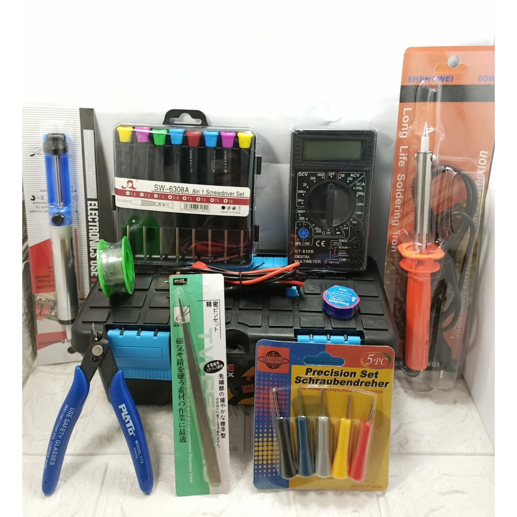 PAKET SOLDER LISTRIK 60W / MULTITESTER DIGITAL / OBENG SET JAM / SEDOTAN / TIMAH / PASTA / TANG KABEL / PINSET