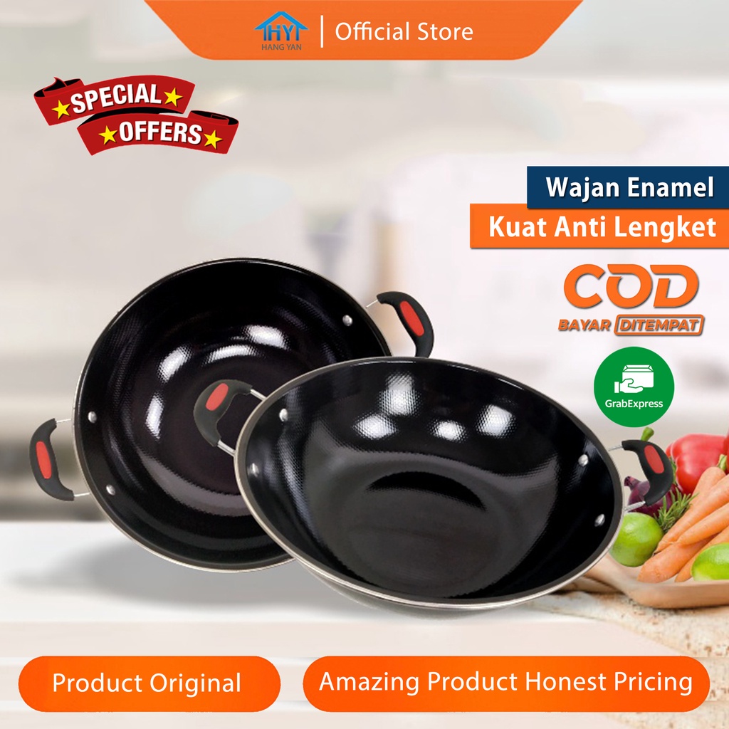 Wajan Enamel Anti Lengket 34CM Penggorengan Gagang Termurah Original