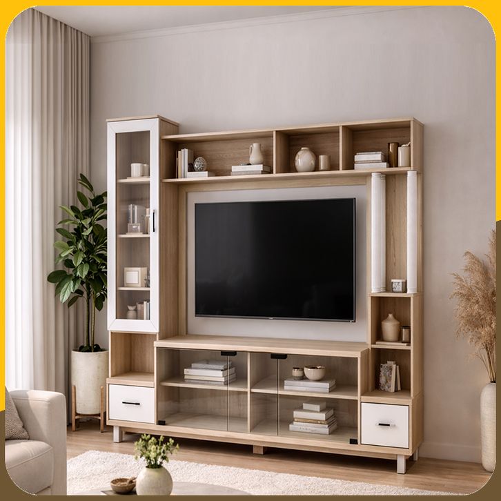 PanenRaya Lemari TV Minimalis Graver LVR1600 Sonoma Cream - Putih 170x40x170