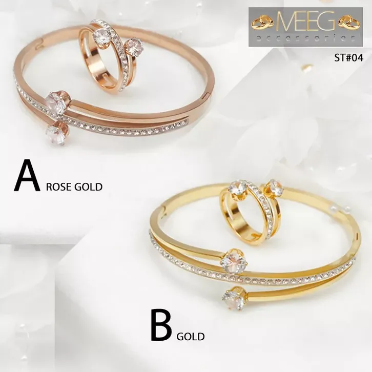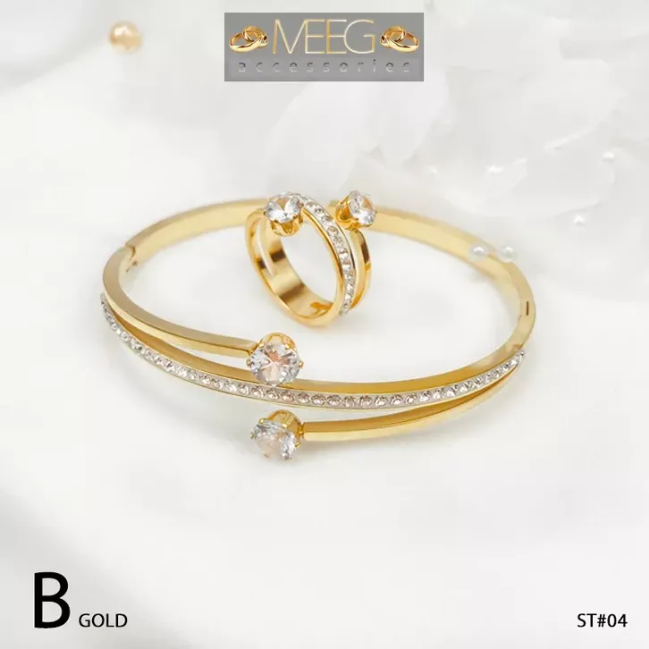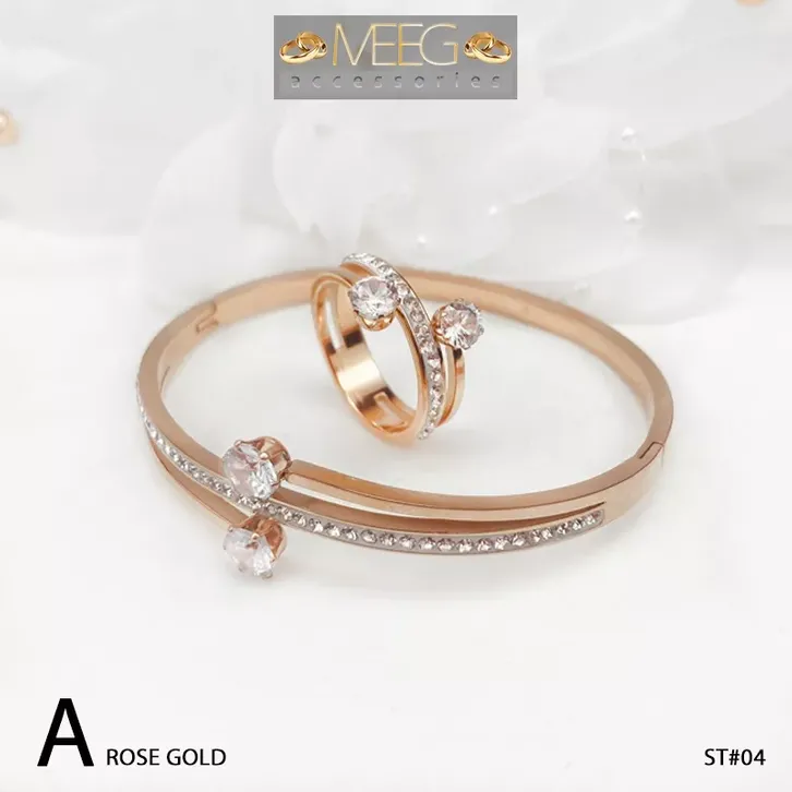 Set Perhiasan Titanium Anti Karat Tidak Luntur Gelang Cincin Aksesoris Fashion Wanita ST#04