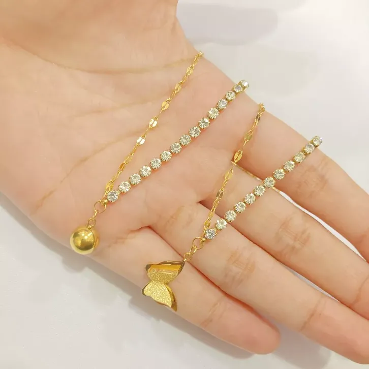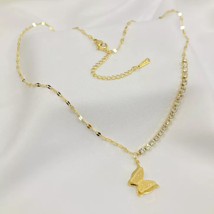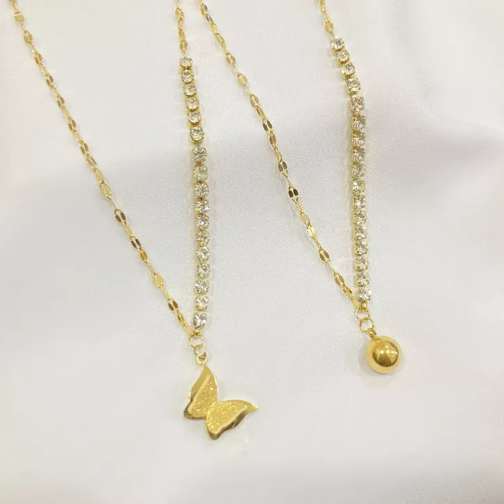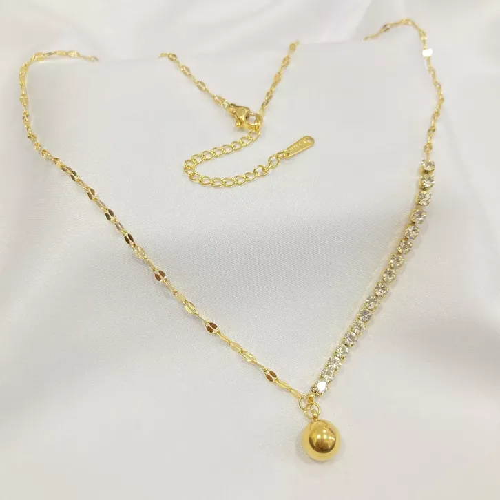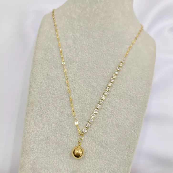 Kalung Wanita Titanium Gold Permata Samping Liontin Fashion Korea