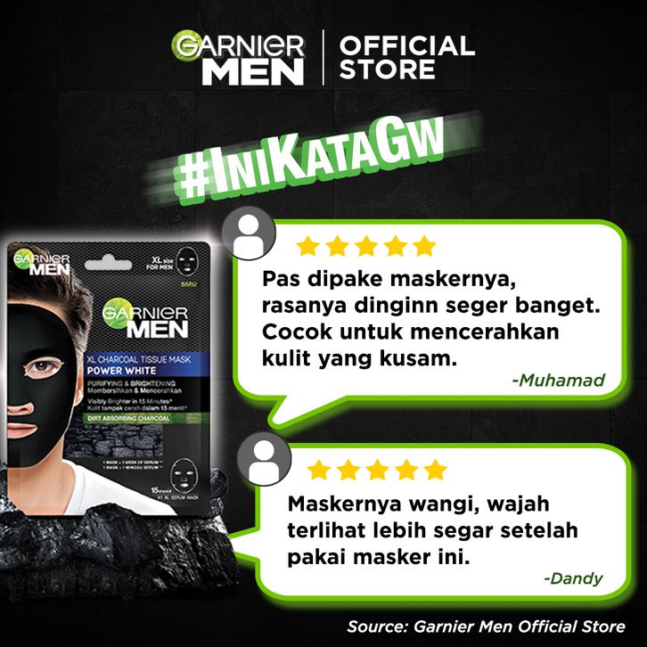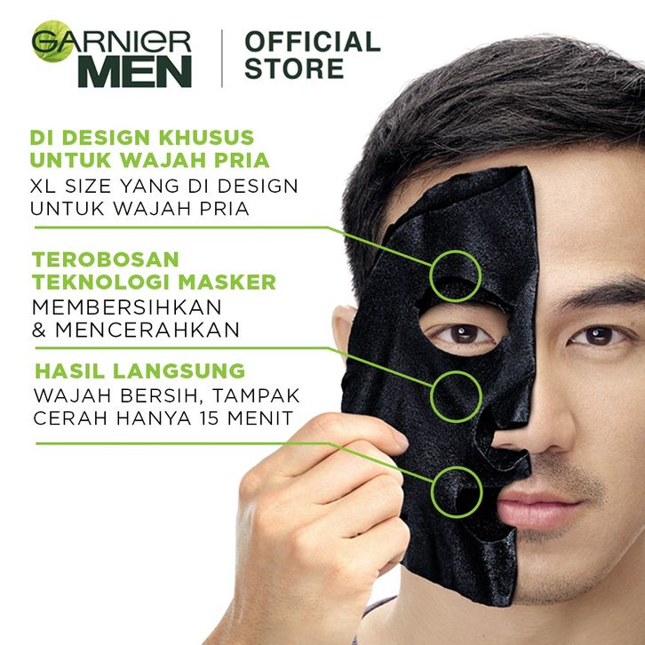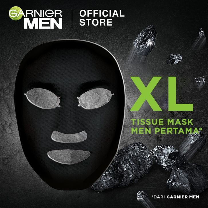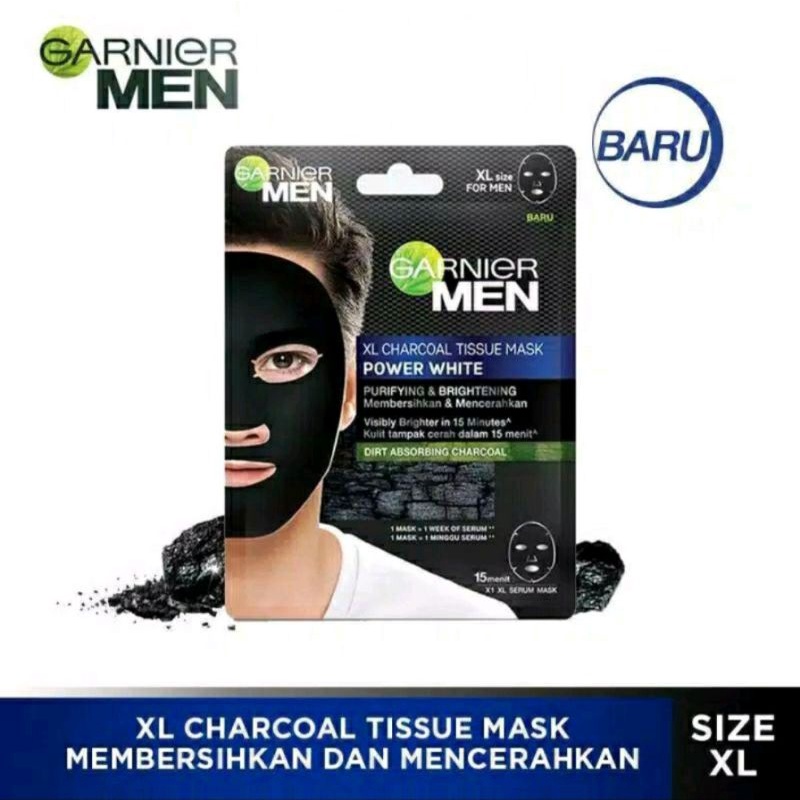 Garnier Men XL Charcoal Tissue Mask Power White (Masker Wajah Pria Untuk Kulit Lebih Cerah) 28 GR