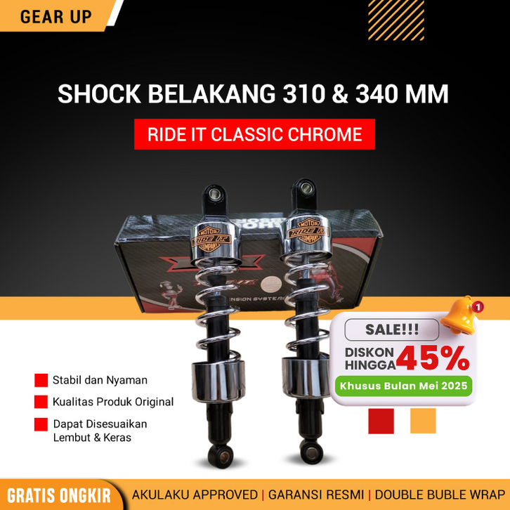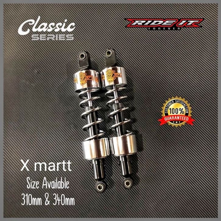 Shock Belakang 310 Dan 340 Mm Rideit Classic Chrome Klasik Krom Double Sok Universal Cocok Untuk Semua Motor Berkualitas