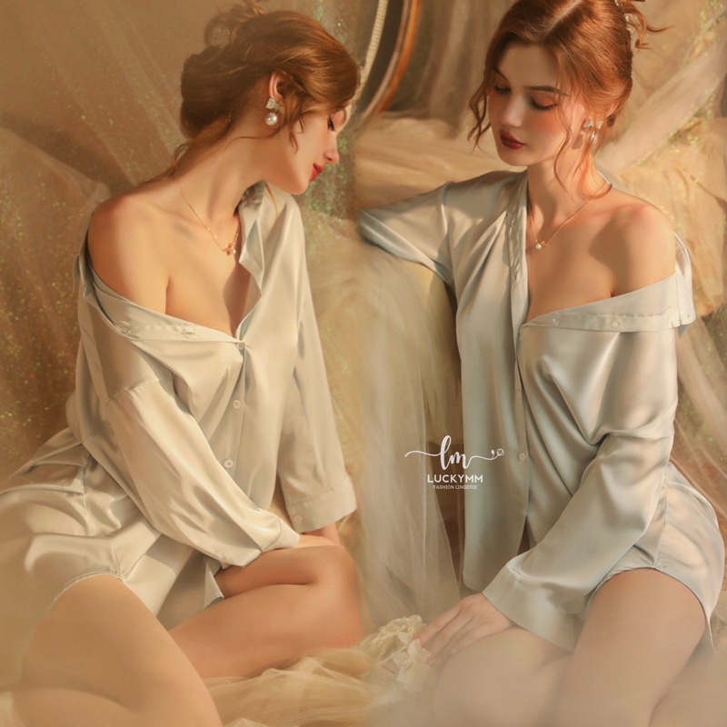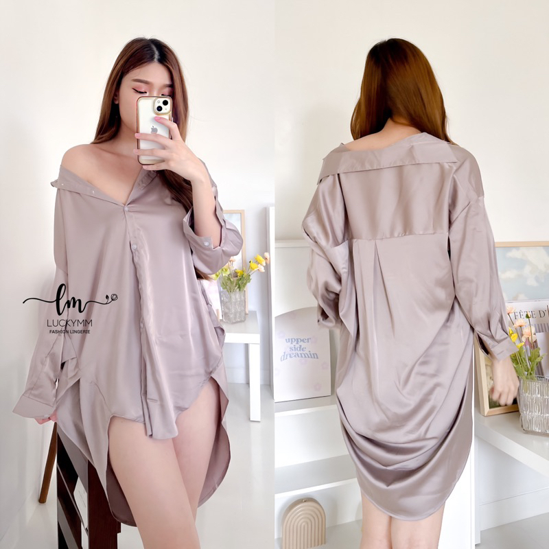 LINGERIE KEMEJA SATIN OVERSIZE BAJU TIDUR SATIN WANITA / LINGERIE SATIN BAJU SEXY KEMEJA BIGSZIE WANITA 196