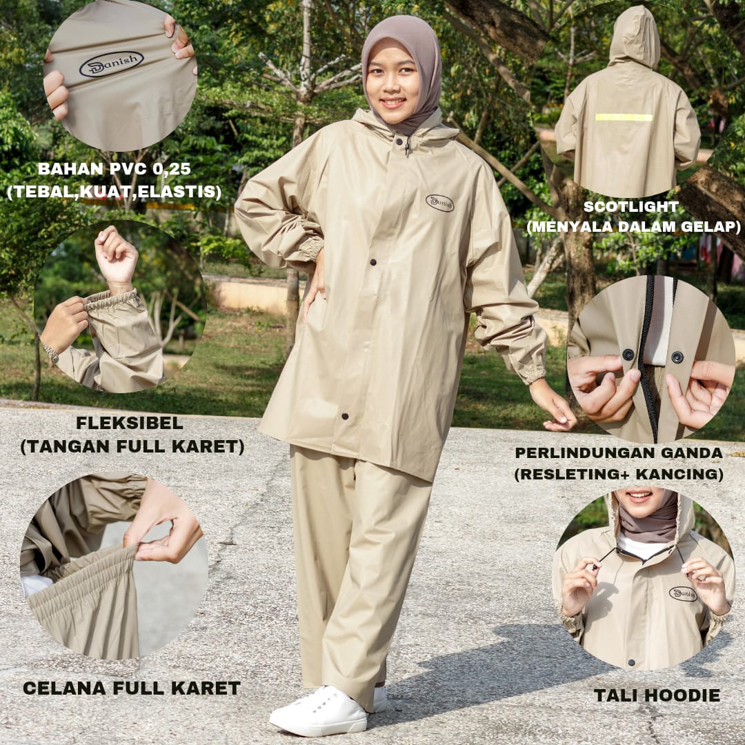 Jas Hujan Pria Wanita Raincoat Danish Mantel Motor Bahan Karet Tebal PVC 0,25 Anti Rembes Waterproof Mantol Dewasa