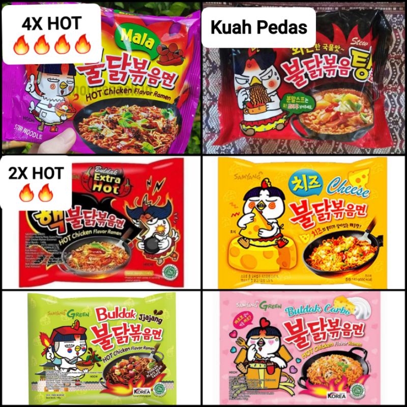 Mie Ramen Samyang Jjajang Carbonara Original Hot Chiken Cheese Nuclear Extreme Extra Hot Stew Mala